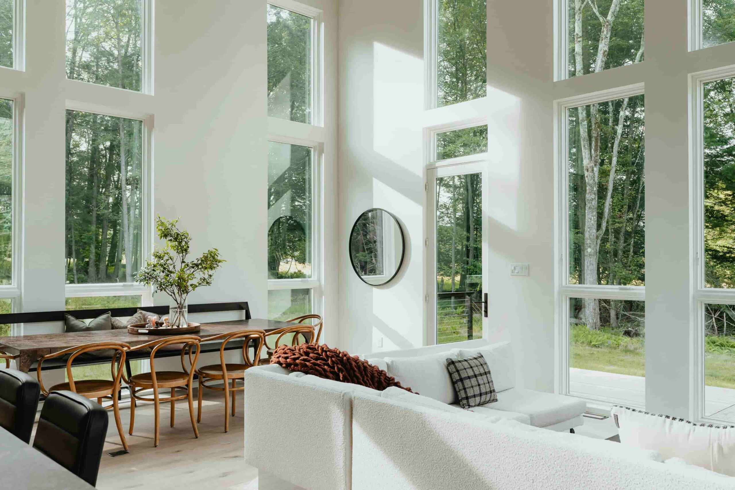 When you align sightlines, you create long, uninterrupted views through a home so the eye travels further, making each room feel more expansive. Glass partitions maintain separation while still allowing light and visual continuity, which prevents rooms from feeling boxed in. And when you use one continuous flooring material across multiple rooms, the space reads as a single, unified plane rather than a series of chopped-up areas.